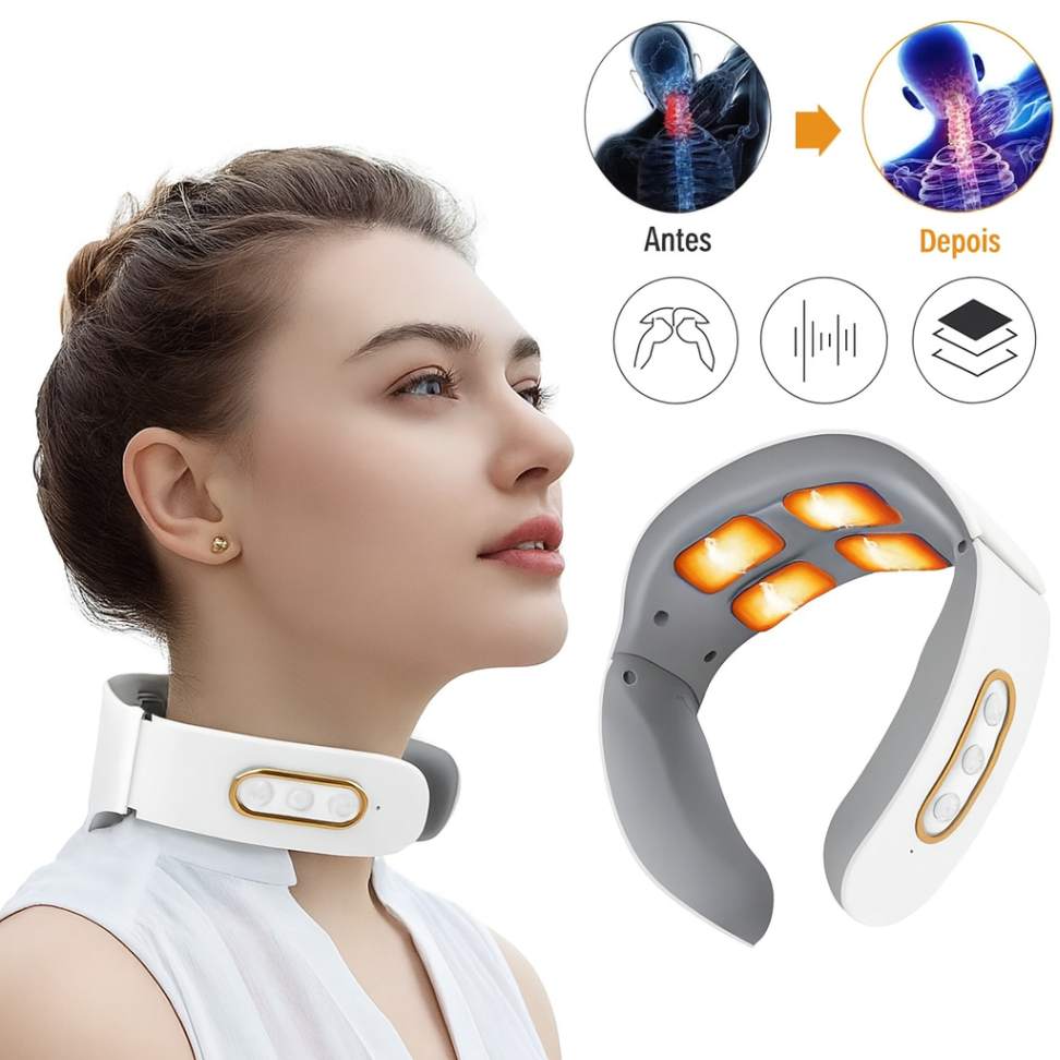 Massageador Cervical Inteligente 4 Eletrodos – Alívio Instantâneo para Pescoço, Trapézio e Ombros